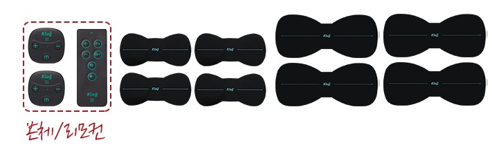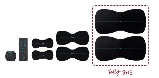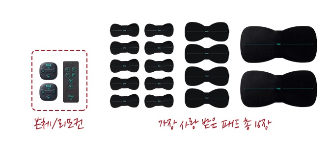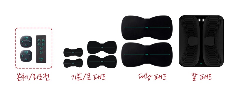 S본체 2개 + 리모컨 + 기본 패드 2장 + 큰 패드 2장 + 대왕 패드 2장 + 무릎 밴드 + 무릎 밴드 전용 겔패치 + 발 패드(블랙)